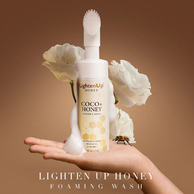 Our gentle, yet powerful LightenUp Honey Coco + Honey Foaming Wash combines the deeply hydrating properties of Coconut Oil with the healing and nourishing properties of Wildflower Honey, creating a perfect, foamy cleanser that helps remove impurities and deeply hydrates the skin. Our delivery system provides a perfect cleansing experience with the brush gently washing away dirt and helping hydrate the area.