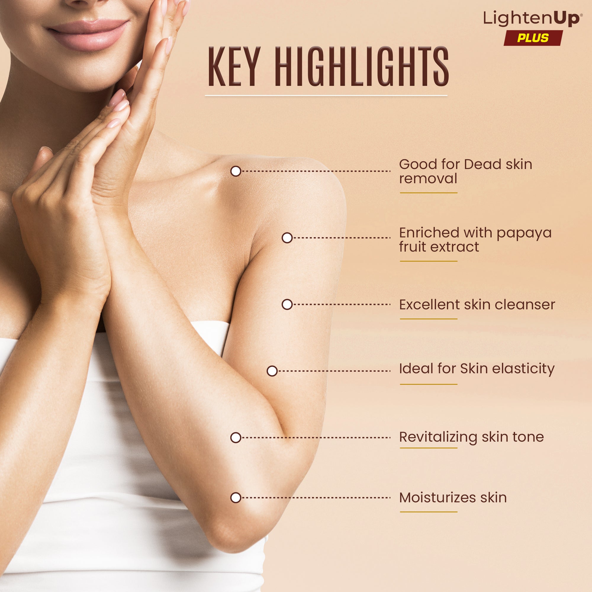 Natural Papaya Enzyme Papain helps remove dead skin cells, soothing and softening skin, and giving it a clearer and brighter appearance. Vitamin A & E help revitalize dry skin, gently moisturizing as it lifts away impurities.
