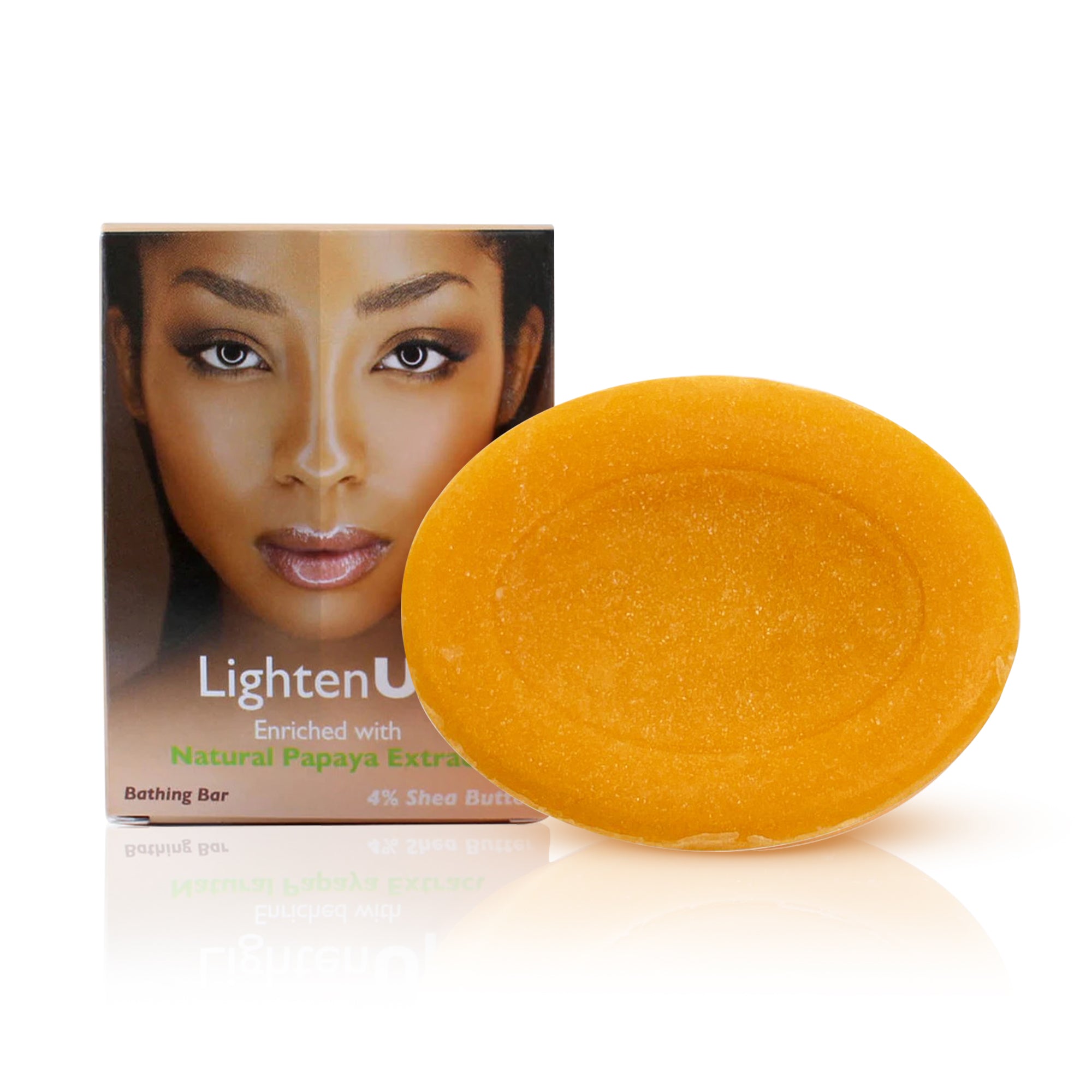 The LightenUp PLUS Natural Papaya Bathing Bar with Shea Butter is an enriched bathing bar soap.