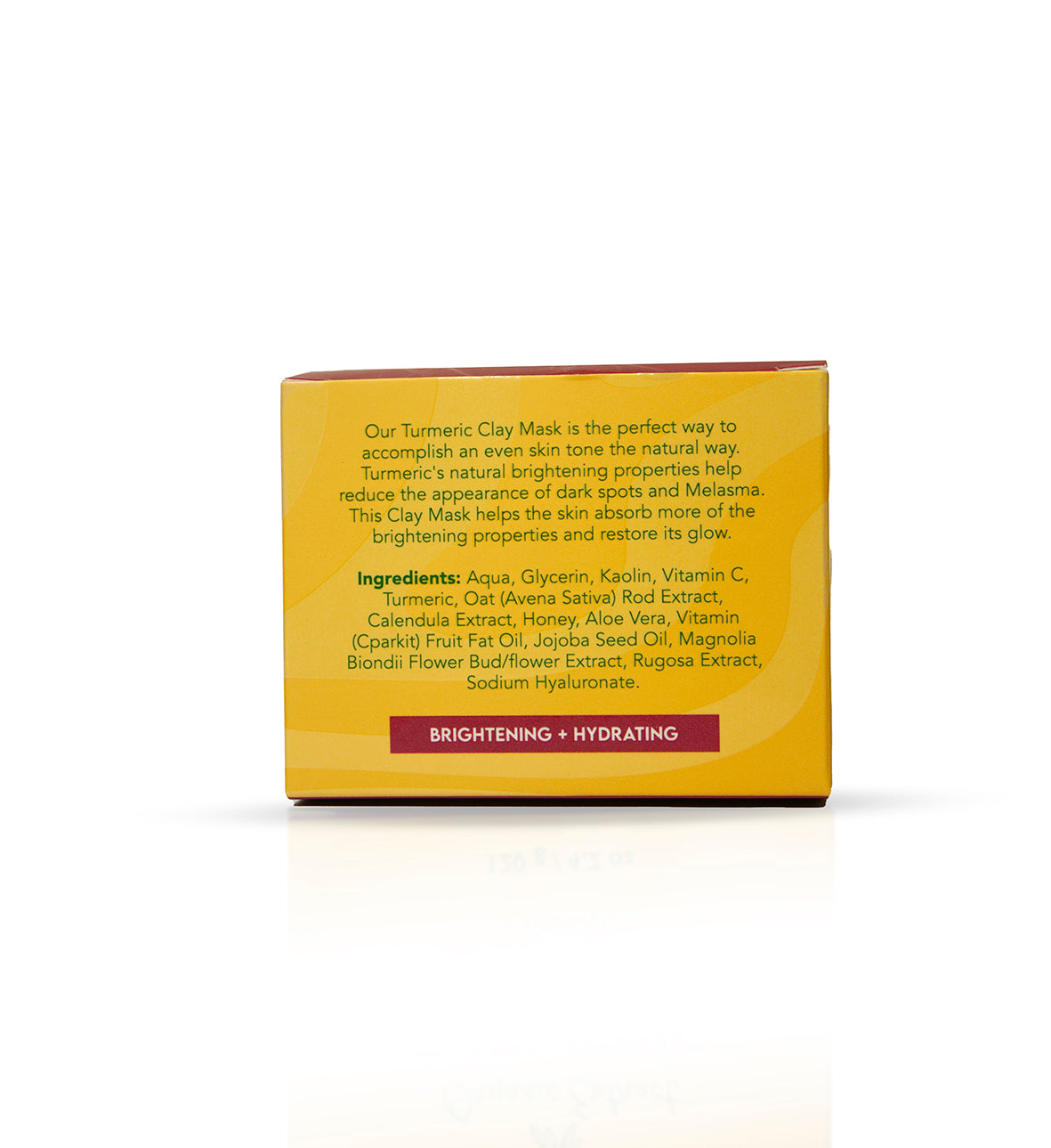 Formulated with a blend of potent ingredients including Aqua, Glycerin, Kaolin, Vitamin C, Turmeric, Oat (Avena Sativa) Rod Extract, Calendula Extract, Honey, Aloe Vera, Vitamin (Cparkit) Fruit Fat Oil, Jojoba Seed Oil, Magnolia Biondii Flower Bud/flower Extract, Rugosa Extract, Sodium Hyaluronate, our Turmeric Clay Mask works to absorb impurities, brighten the complexion, and restore skin's natural glow.