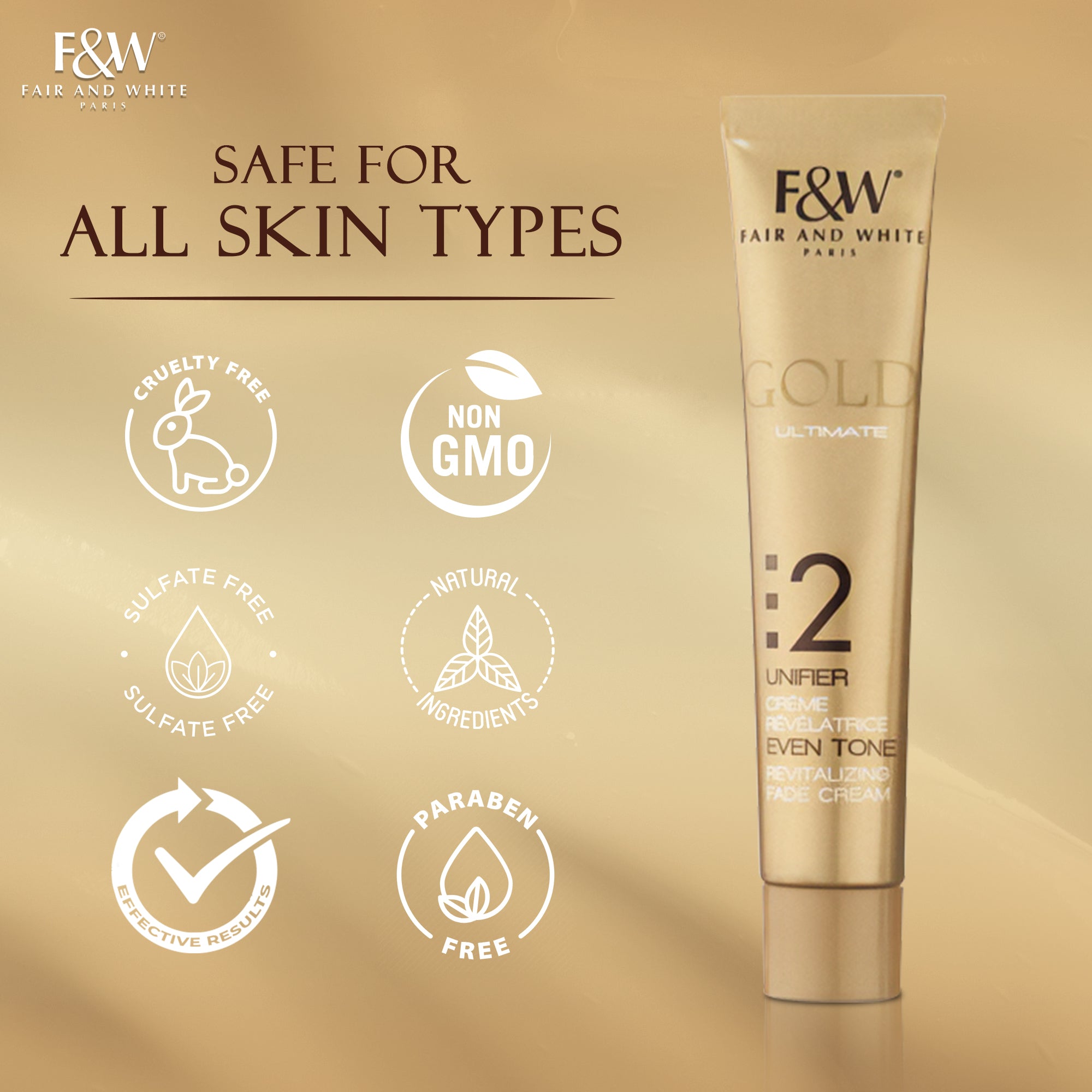 Fair & White Gold Revitalizing Fade Cream ayuda a resaltar el tono de piel apagado y desigual, además de aclarar las manchas oscuras.