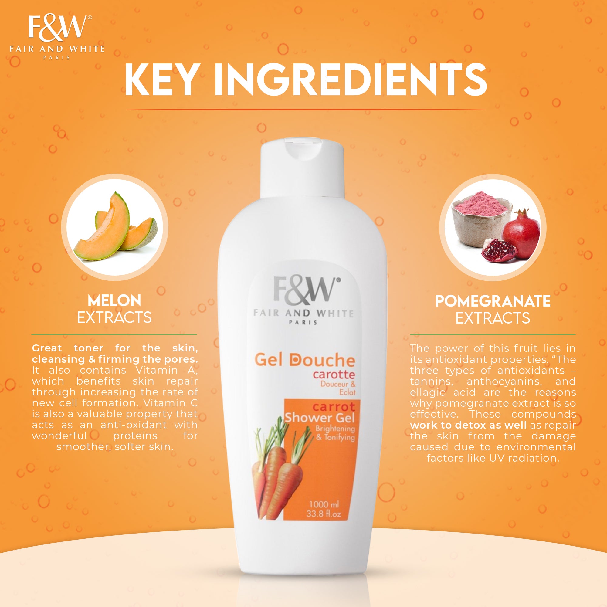 Fair & White Carrot Shower Gel Pomegranate and Melon Extract
