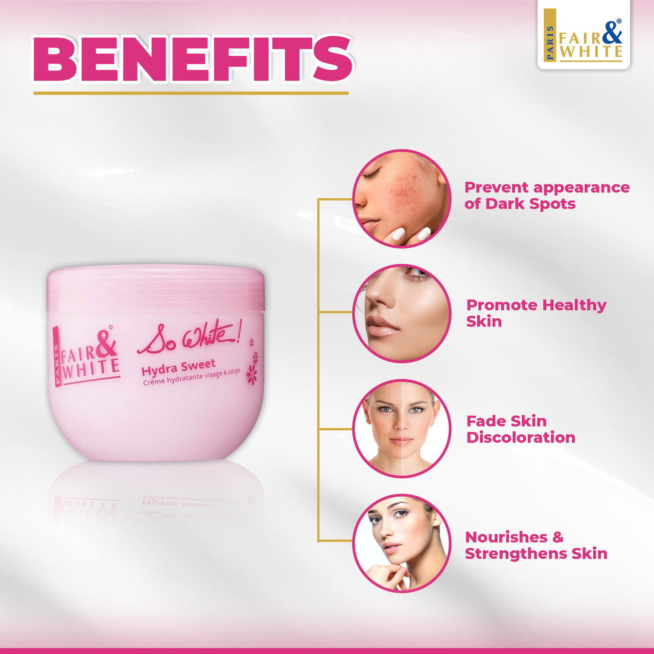 Fair & White So White Hydra Sweet Moisturizing Cream 400ml Fair & White So White - Mitchell Brands - Skin Lightening, Skin Brightening, Fade Dark Spots, Shea Butter, Hair Growth Products